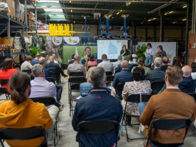 Om vier uur was het aan de 50 bedrijfsleiders, HRMverantwoordelijken, milieu-coördinatoren of facility managers om elkaar in de Open Kantine op te zoeken. Met een aantal inspirerende sprekers werden ze warm gemaakt om samen na te denken over de manier waarop ze duurzamer kunnen ondernemen.