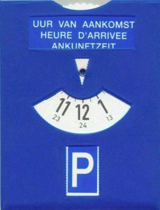 Om reglementair te parkeren in een blauwe zone gebruik je de parkeerschijf. Je legt de schijf in jouw wagen achter de voorruit (als er geen voorruit is, op het voorste gedeelte van het voertuig).