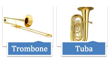 De trombone en tuba worden ook wel de grote koperblaasinstrumenten genoemd. Ze spelen de laagste tonen, in tegenstelling tot de "kleine" kopers die het hoogst klinken. De tuba speelt met ventielen die verbonden zijn met de buizen. De trombone verandert van toonhoogte door te schuiven.