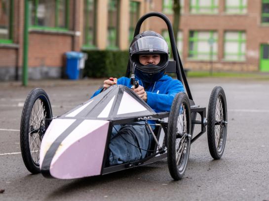In het Gemeentelijk Technisch Instituut Londerzeel (GTIL) groeit dit schooljaar een bijzonder project dat techniek, duurzaamheid en onderwijs samenbrengt. Zeven leerlingen bouwen samen een elektrische racewagen voor de Greenpower Challenge. In deze internationale wedstrijd legt elk team in 60 minuten zo veel mogelijk afstand af met een zelfgebouwde wagen die rijdt op één standaardmotor van 24 volt. De challenge draait dus niet om brute kracht, maar om slim ontwerp, efficiëntie, samenwerking en technische creativiteit. Dat past perfect bij de STEM‑werking van het GTIL.