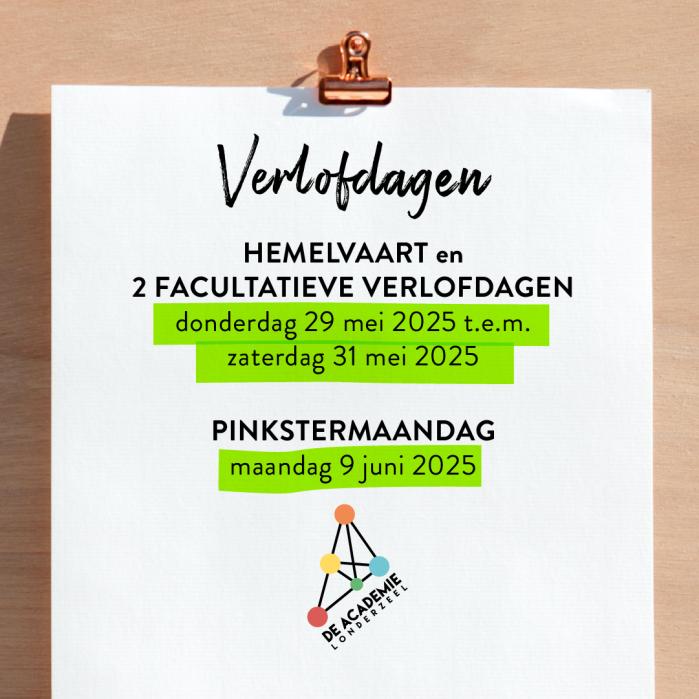 Volgende week woensdag 11/12/'24 is het op de Academie Londerzeel pedagogische studiedag.