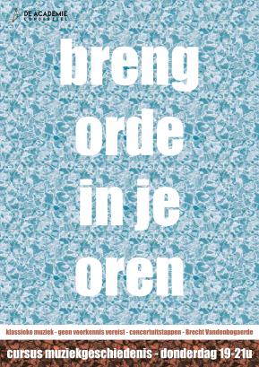 Verschillende componisten worden er onder de loep genomen. Je komt meer te weten over hun leven, hun invloed, hun stijl en uiteraard: hun muziek! Ook krijg je inzicht in de verschillende stijlperiodes die de muziekgeschiedenis rijk is. Aan deze cursus is regelmatig een concertuitstap verbonden, die dan tijdens de lessen wordt ingeleid. Er is geen voorkennis vereist.