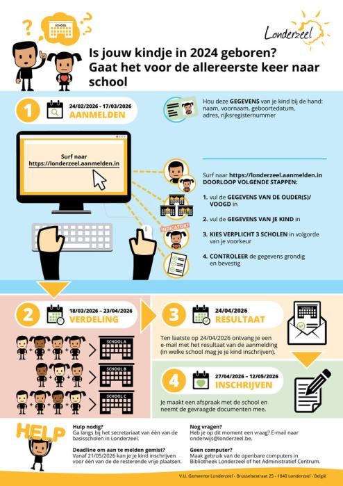 Beste ouders, Voor het schooljaar 2026-2027 kunnen we al volgende data meegeven: Inschrijvingen voorrangsperiode: Van 2 februari 2026 tem 13 februari 2026 De aanmeldingsperiode voor de inschrijvingen loopt van 24 februari 2026 tot en met 17 maart 2026 De resultaten van de aanmeldingen worden...