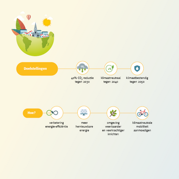 Sinds dinsdag 24 januari 2023 hebben we een goedgekeurd gemeentelijk energie- en klimaatactieplan (in het kort SECAP). Daarin is vastgelegd dat we tegen 2030 onze CO2-uitstoot met 40% zullen verminderen, tegen 2040 klimaatneutraal zullen zijn en tegen 2050 klimaatbestendig.
