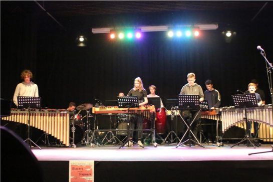 Het groepsmusiceren slagwerk van De Academie Londerzeel treedt op.