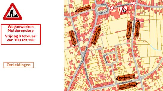 6 februari van 10 tot 15 uur: Malderendorp afgesloten