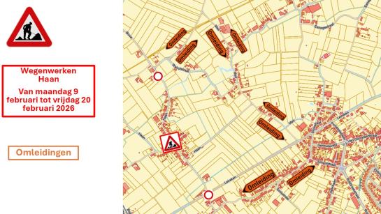 Voor de aanleg van een glasvezelnetwerk in opdracht van Wyre zijn er werken in Haan. Er is een omleiding via Meir.