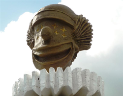 De reus is een maxi versie van de bronzen kiekenpoot, het beeldje aan de gevel van het Administratief Centrum. Dit kunstwerk is van de hand van beeldhouwer en ereburger Pol Van Esbroeck, eveneens afkomstig uit Londerzeel.
