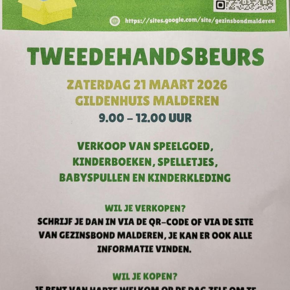 Tweedehandsbeurs van de Gezinsbond in Malderen: kledij voor baby's, kinderen en tieners, zwangerschapskledij, baby- en kinderartikelen, binnen- en buitenspeelgoed. Dit alles is te koop aan voordelige prijzen!