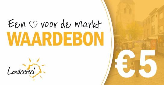 Met deze marktwaardebon (ter waarde van 5 euro) kan je aankopen doen bij de vaste markthandelaars van de dinsdagmarkt in Londerzeel centrum.