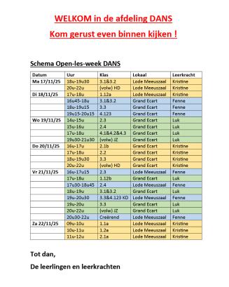 Graag willen wij jullie uitnodigen om even te komen kijken tijdens onze open-les-week van maandag 17 november '25 t.e.m. zaterdag 22 november '25.