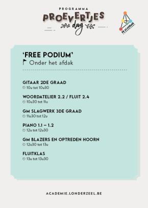 Vanaf 10 uur kan je het volledige aanbod leren kennen. Er worden proeflessen Woord en Dans gegeven