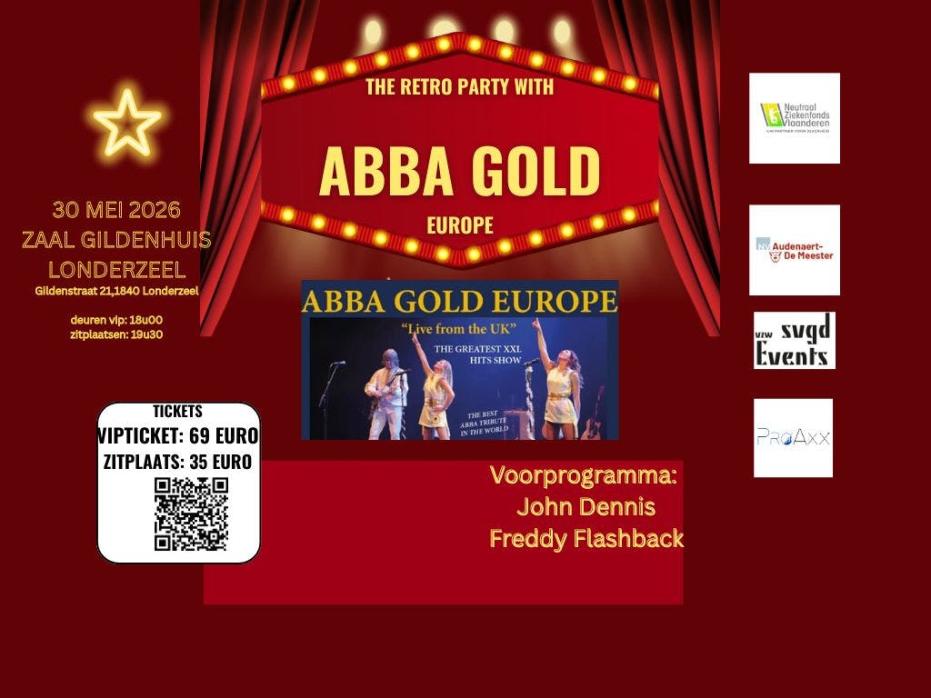 ABBA GOLD EUROPE met live band komt naar Londerzeel op 30 mei 2026.