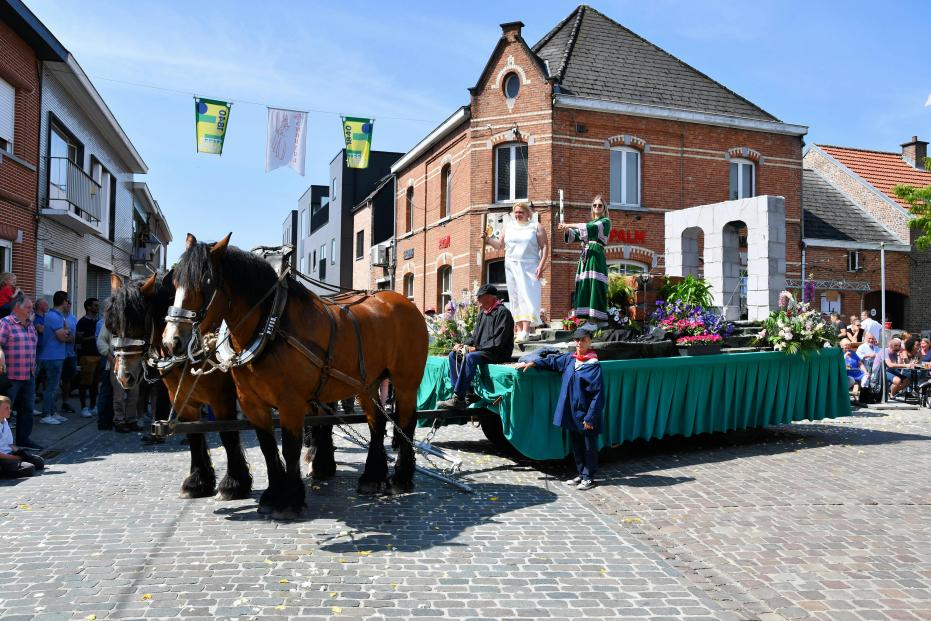 Naar jaarlijkse traditie gaat op pinksterzondag de Genovevaprocessie uit in Steenhuffel. Meer dan 750 figuranten en diverse boerenpaardengetrokken wagens geven vorm aan de processie.