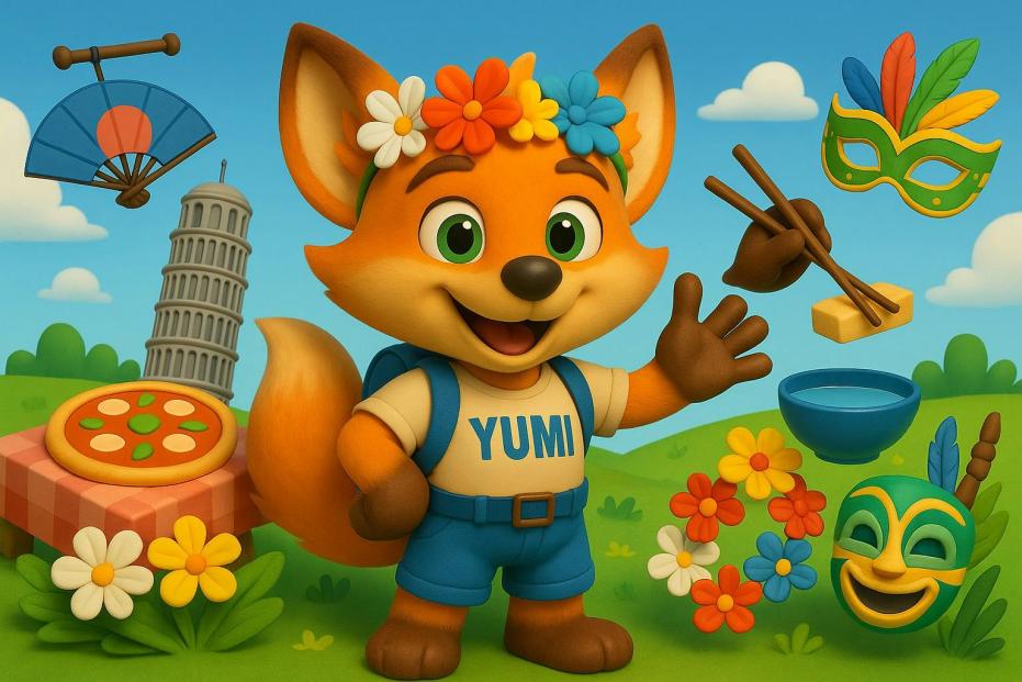 Maak een wereldreis vol plezier! Samen met Yumi ontdekken kinderen landen en culturen via creatieve en speelse uitdagingen.