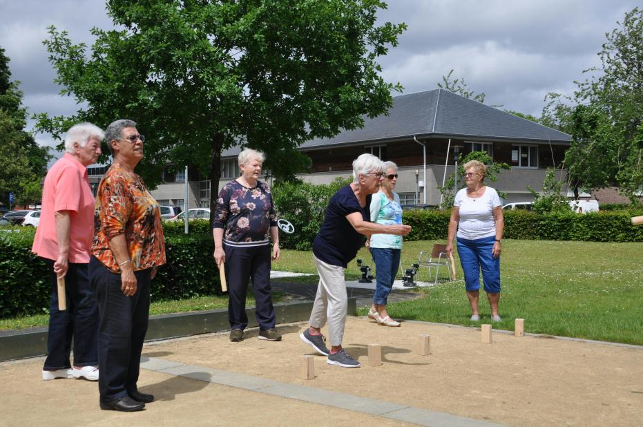 Wekelijks op donderdag bij droog weer een partijtje kubb onder de aanwezigen.