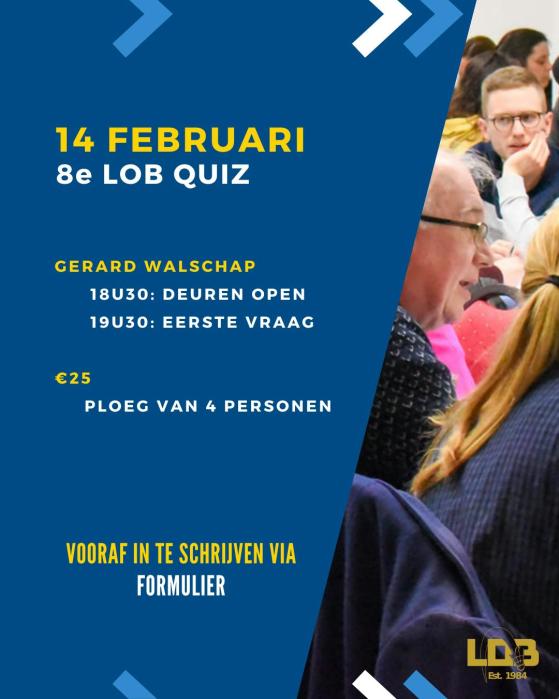Op zaterdag 14 februari organiseren we onze jaarlijkse LoB-quiz 🏆